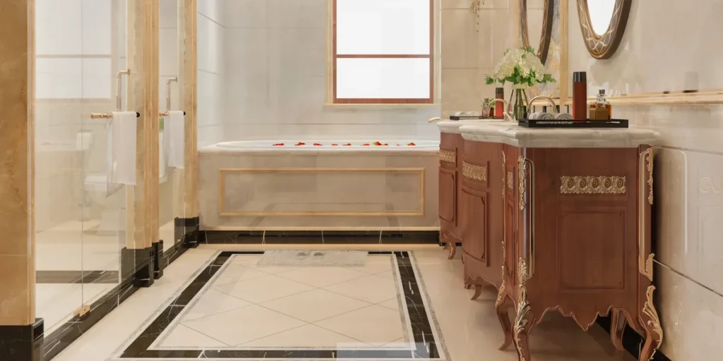 Desain kamar mandi klasik dan modern menawarkan pesona yang berbeda. Kamar mandi klasik mengutamakan kemewahan dengan material seperti marmer dan granit, serta detail ornamental yang rumit. Warna-warna netral seperti putih, krem, dan cokelat menciptakan suasana tenang. Di sisi lain, desain modern cenderung minimalis, dengan garis-garis bersih dan penggunaan material yang inovatif.