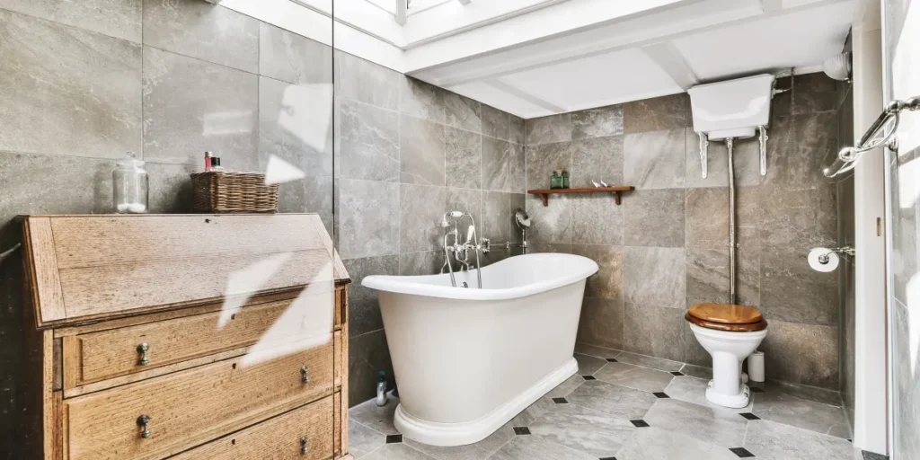 Kamar mandi klasik menawarkan nuansa elegan, mewah, dan atemporal. Salah satu ciri khasnya adalah penggunaan peralatan klasik. Peralatan seperti bathtub clawfoot, wastafel porselen dengan kaki-kaki yang menawan, dan keran dengan desain rumit adalah elemen kunci yang menciptakan atmosfer klasik.