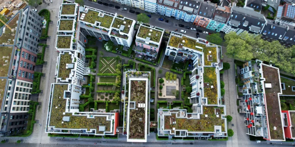 • Meningkatkan Nilai Estetika: Atap hijau memberikan tampilan yang segar dan alami pada bangunan, meningkatkan nilai estetika dan kenyamanan visual.